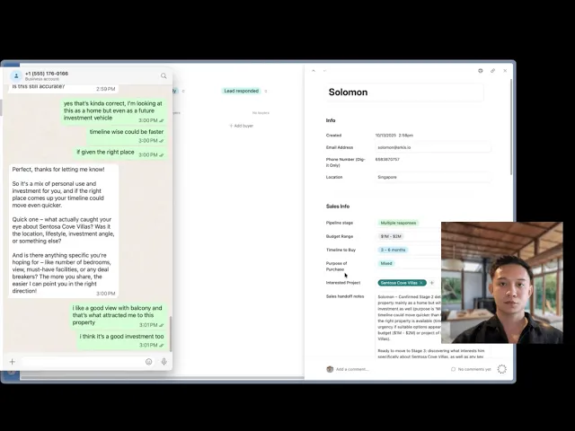 Automatically filters leads by your qualification criteria (e.g. budget, timing etc.). Hot prospects get routed to your sales team with full conversation history so your team only talks to qualified buyers and never starts conversations from scratch.